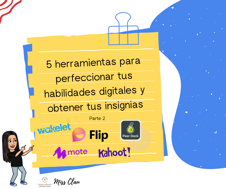 5 herramientas para perfeccionar tus habilidades digitales y obtener tus insignias (Parte 2) Wakelet Flip Mote Pear Deck Kahoot